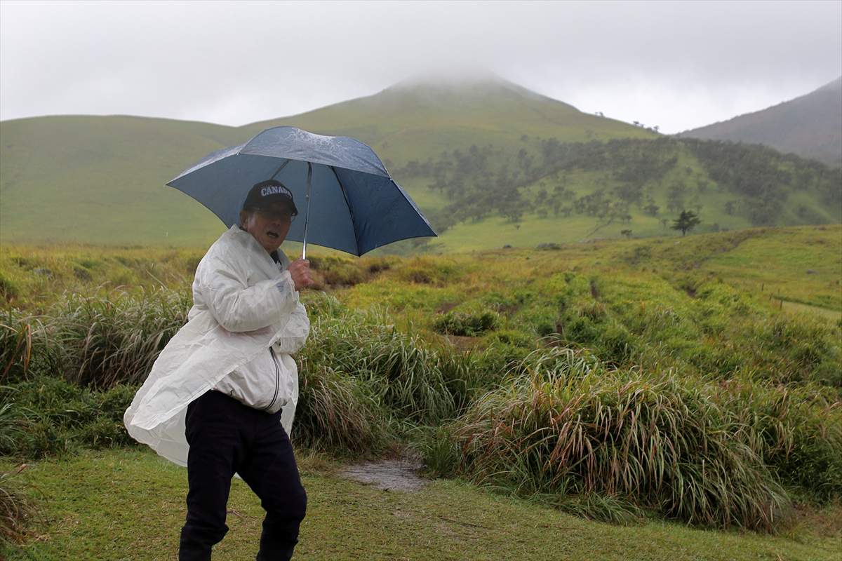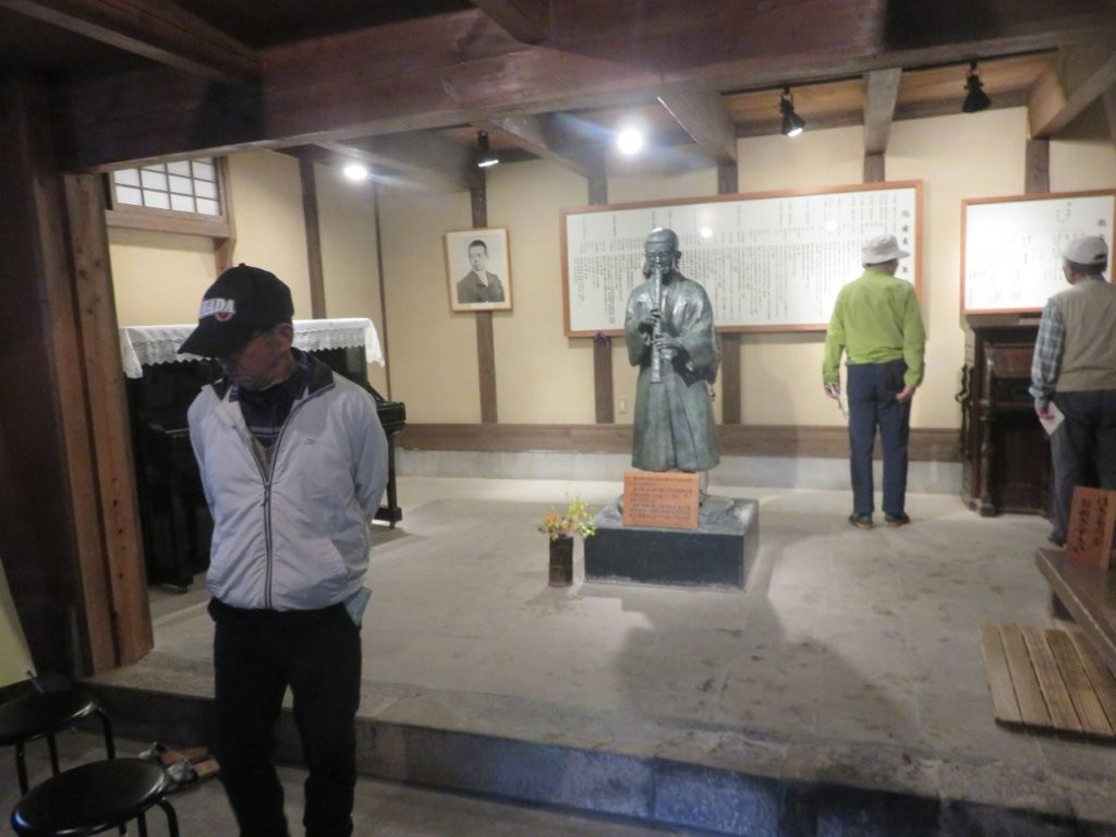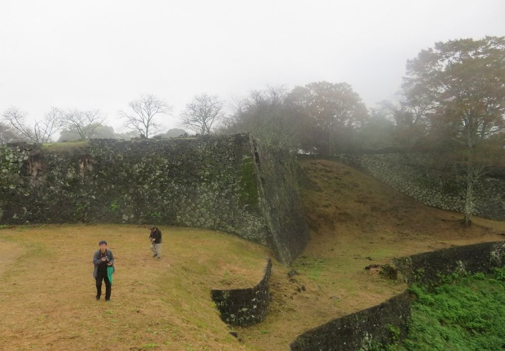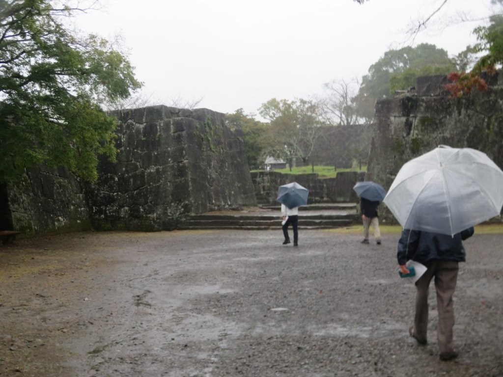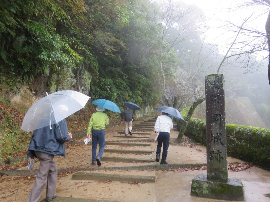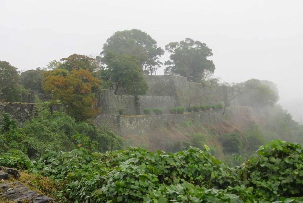 年10月31日(金) 参加者:7名 <コー ス> 由布院====狭霧台ⓟ====由布岳正面登山口ⓟ====瀧 廉太郎記念館====岡 城跡ⓟ・・・・△ 岡城跡・・・・ⓟ==== 熊本県高森町(泊) <歩行時間> 2日目は大分県中部に位置する由布鶴見火山群の主峰由布岳別名「豊後富士」に登る予定であったが、朝から一日中雨の天気予報。とりあえず登山口まで行って みたが、それほど強い雨ではなかったがやむ気配けなく風も吹いており中止。 この日の宿は翌日以降の行程をみて熊本県高森町に予約してあるので、途中大分の竹田町にある険峻な要害である山城「岡城跡」を訪ねることに。岡城をモデル にして名曲「荒城の月」を作曲し23歳で夭折した瀧廉太郎が幼少期の2年半を過ごした旧宅である滝廉太郎記念館にも立ち寄った。 |